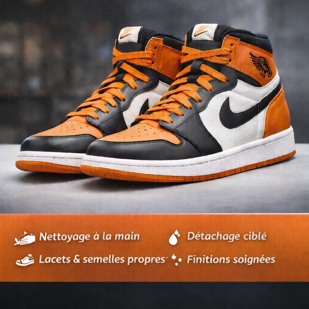 Nettoyage premium sneakers est notre service le plus complet pour redonner éclat, propreté et fraîcheur à vos baskets préférées.